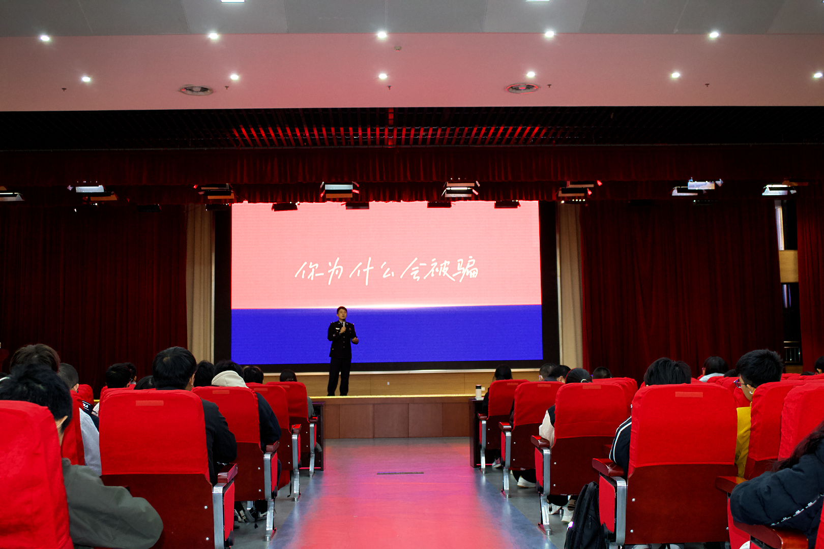 11月18日晚,电气与自动化工程学院于翡翠湖校区科教楼二楼报告厅举办防范电信网络诈骗专题宣传讲座,全体2025级本科新生参会。合肥市公安局刑...
